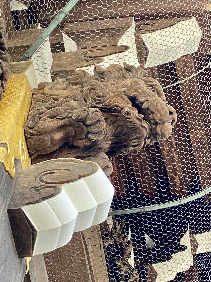 獅子は伝説上の生物ですが、この木鼻は、京都市動物園にライオンがやってきた直後に作られていて